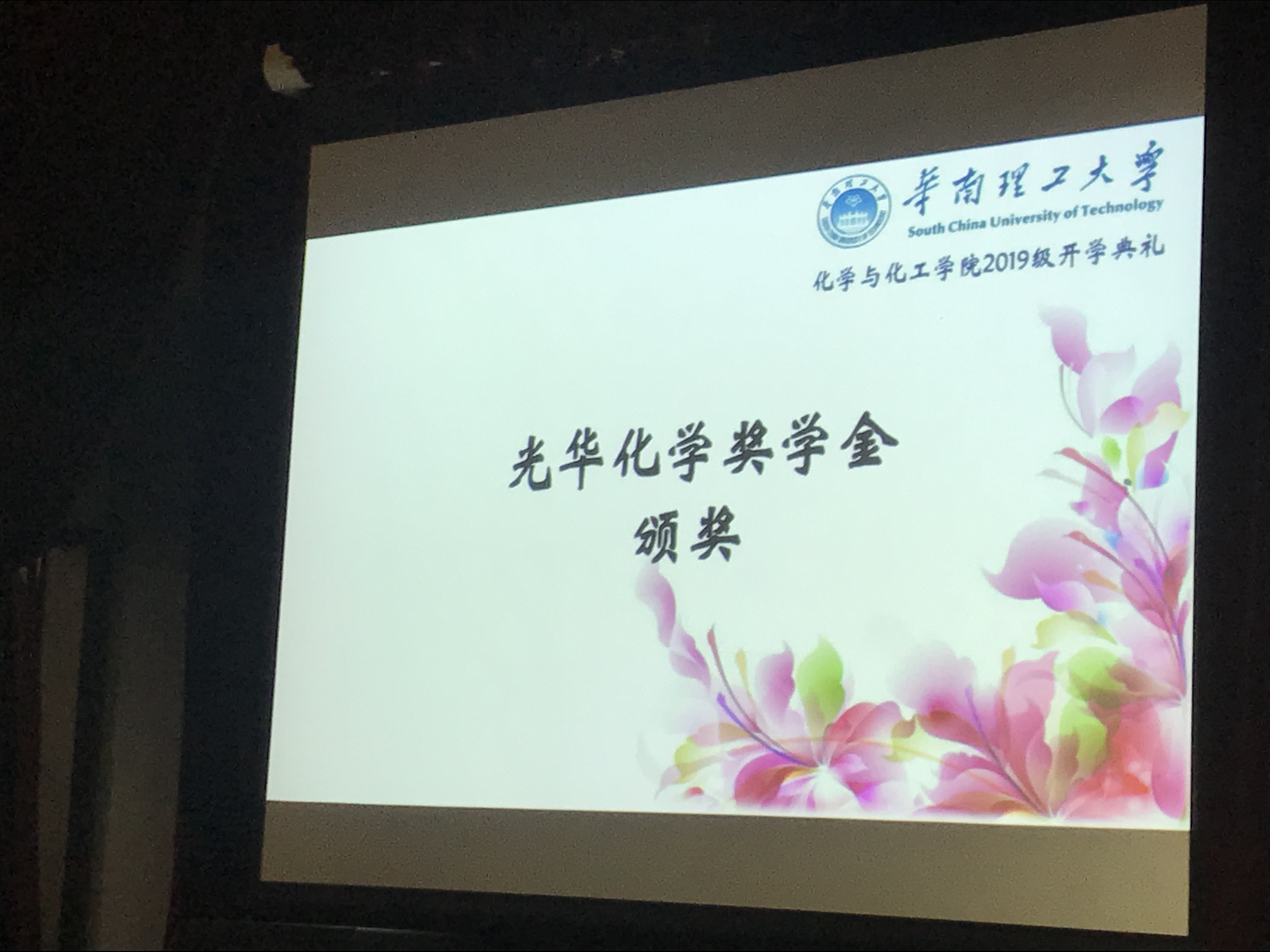 近日,華南理工大學化學與化工學院2019級新生開學典禮在華南理工大學勵吾科技大樓國際會議廳舉行。314名本科生、385名研究生齊聚一堂,懷著踏進新校園的欣喜和期待,認真聆聽來自師長的教誨和鼓勵。化學與化工學院的多位領導、優秀教師和關工委學院分會代表以及各企業代表共同出席本次典禮。光華科技人力資源中心總經理曾萍女士、技術中心副總經理劉彬云先生應邀出席典禮。
