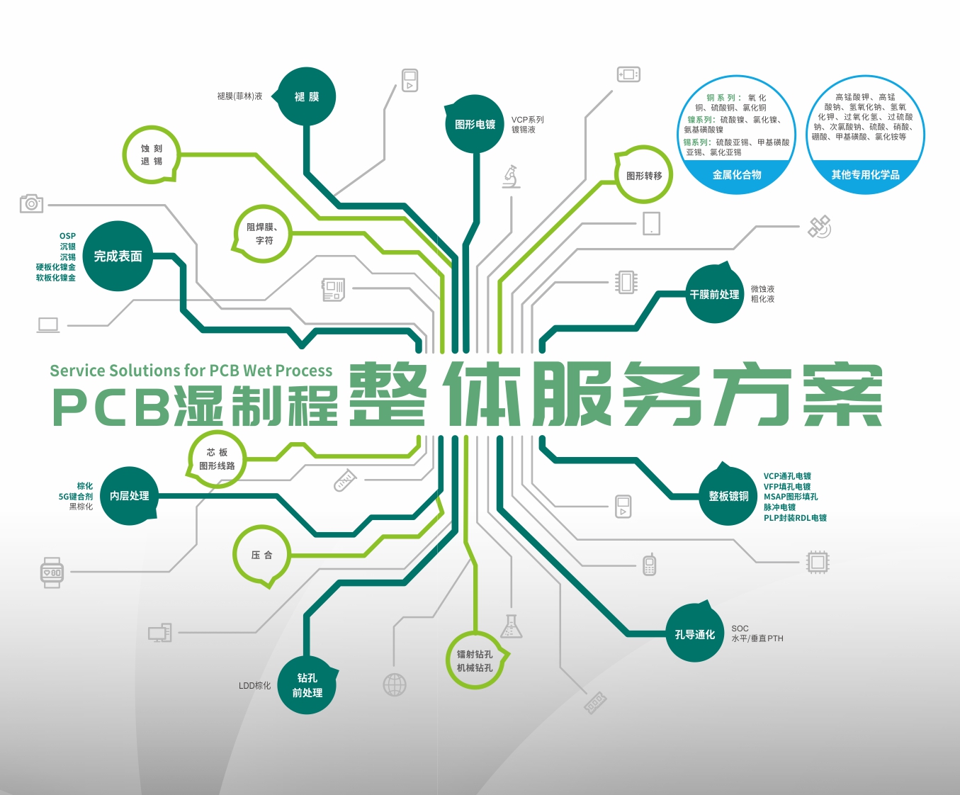 在PCB領域,光華科技為業界提供深度配套的PCB濕制程生產技術,提供全方位的化學品服務方案,產品包括