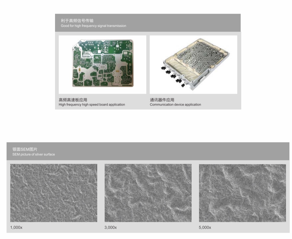 化學沉銀作為一種無鉛的PCB完成表面處理工藝,是通過置換反應在銅面沉上一層厚度6~16μ inch的銀,其表面完整,具有良好的導電性和可焊性能
